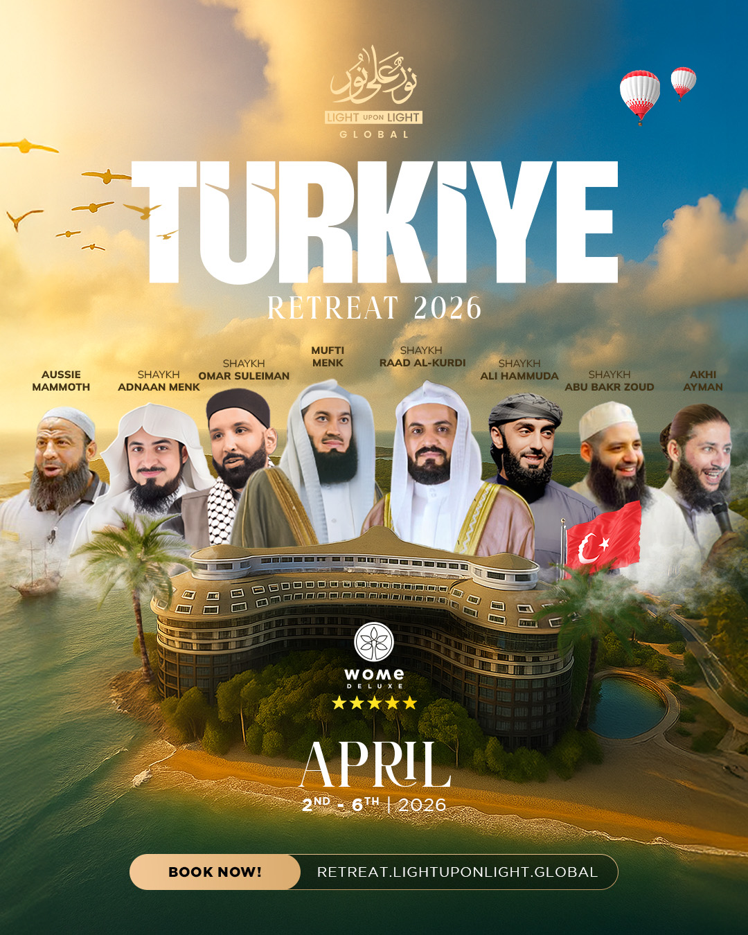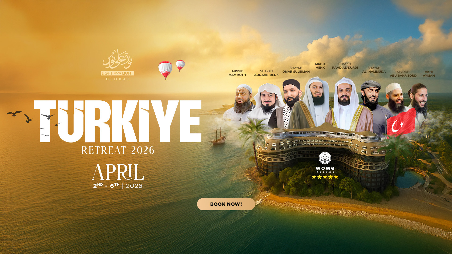 The retreat will take place at Wome Deluxe, a luxurious halal-friendly resort located in Antalya, known for its stunning natural beauty, turquoise waters, and serene atmosphere.